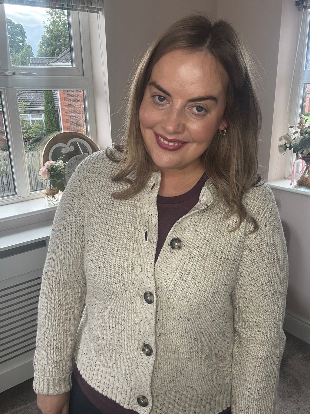 The June is a cotton-rich knitted cardigan available in a variety of colourways. Woven from a flecked ‘neppy’ yarn giving it a beautifully soft level of colour.